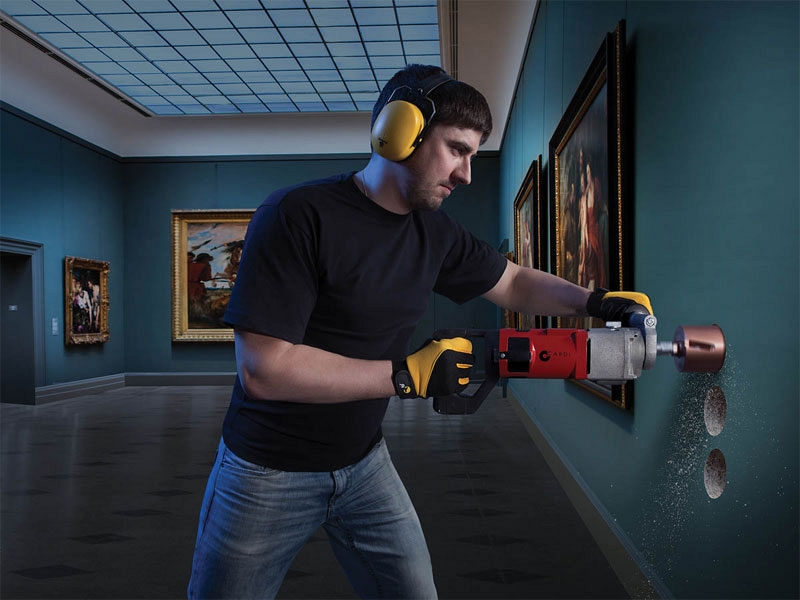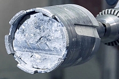 Технология Diamond Hit – новейшая технология алмазного сверления в железобетоне, ФБС, кирпиче без подачи воды («в сухую») и дополнительного вскрытия алмазных сегментов в процессе работ. Ударные дрели или специальные двигатели сверлильных машин и уникальные алмазные коронки позволяют профессионально сверлить железобетон с высоким армированием и абразивные материалы. - Сухое сверление армированного бетона: