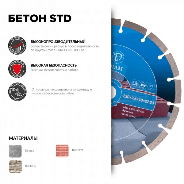 Цена и технические характеристики алмазного отрезного круга Diam STD 1A1RSS Бетон 150 мм:
