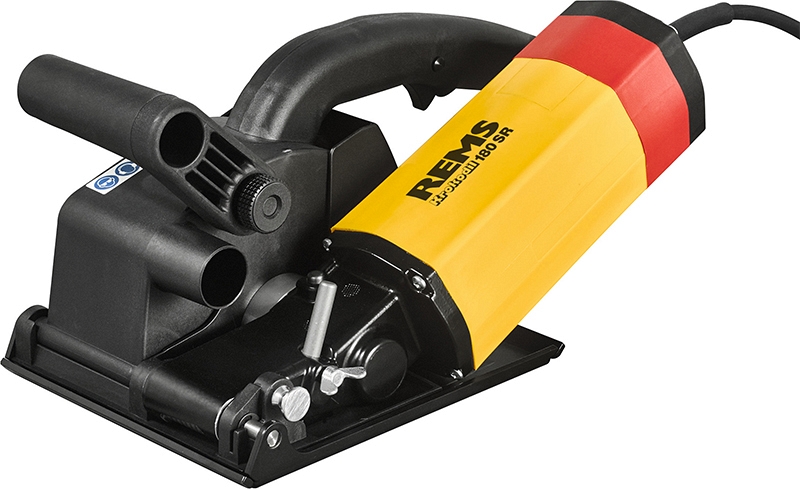 - Rems Krokodil 180 SR. Электрическая просечная и разрезная машина с алмазным диском и системой регулирования скорости. Для просечки и резки, например, бетона, железобетона, кирпичной кладки любого вида, природного камня, бесшовного пола любого вида. Глубина штробы ≤ 61 мм, плавная регулировка. Ширина штробы ≤ 62 мм, изменяется с помощью прокладок 3, 6, 10, 20 мм. Привод с приводным валом Ø 22,2 мм, для 1, 2 или 3 алмазных дисков по EN 13236, ≤ Ø 180 мм, редуктором не требующим обслуживания, универсальным двигателем 230 В, 50 / 60 Гц, 2000 Вт. Многофункциональный блок электроники с плавным пуском, ограничением скорости вращения на холостом ходу, предохранителем от перегрузки, защитой от блокировки. Соединительный провод 5,7 м. Защита от непреднамеренного запуска при отказе сетевого питания. Предохранительный выключатель импульсного режима с блокировкой повторного включения. Скорость вращения под нагрузкой 3300 об/мин. Патрубок для подключения к пылесосу / пылеотводу.