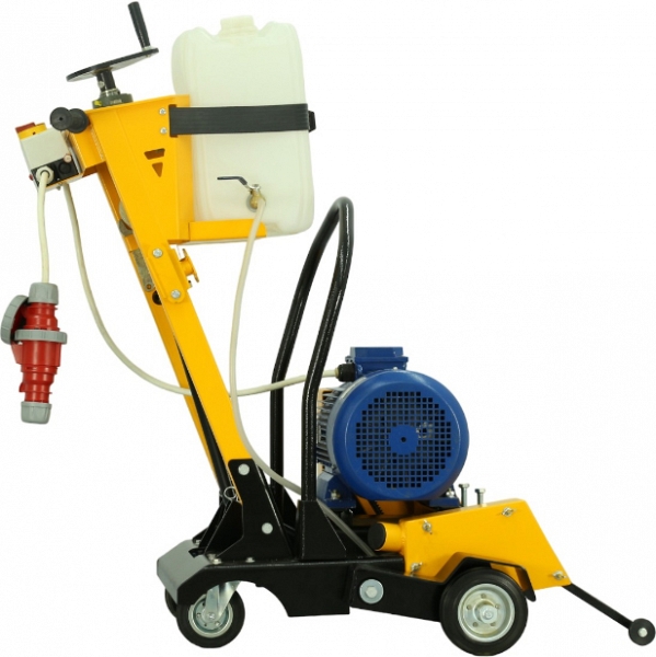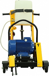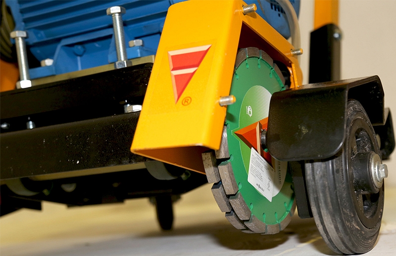 - Вращающиеся вокруг вертикальной оси задние колеса позволяют своевременно и без лишних усилий направлять в нужную сторону и вести криволинейный рез бетона, железобетона, асфальта, повторяя изгиб трещины