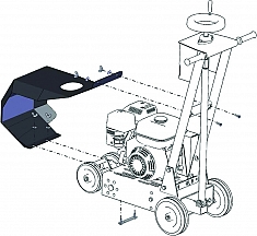 – Легкая и плавная регулировка глубины реза до 100 мм - Защитный кожух для защиты двигателя от падающего на него шлама – специальное ограждение двигателя: при резке мягкой кровли часто случается, что битумная крошка и пыль попадают на корпус двигателя и, расплавляясь, образуют пленку, которая резко уменьшает теплообмен и приводит к перегреву двигателя или становится причиной поломки его частей и выхода двигателя из строя