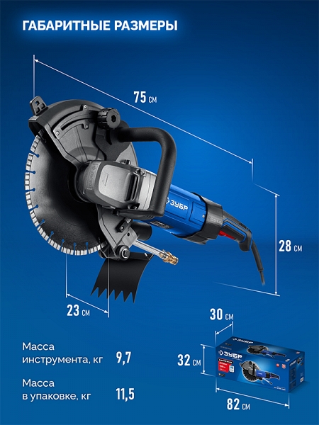 Преимущества электрического резчика по бетону Зубр Профессионал РЭ-2700-300: