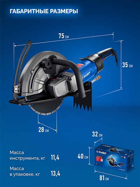 Преимущества электрического резчика по бетону Зубр Профессионал ЗШ-П120-2700 ПСТ: