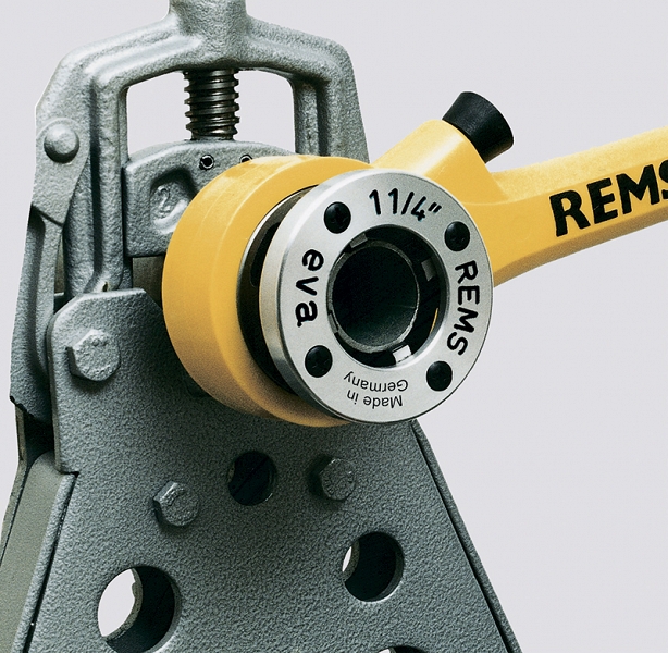 - Rems Eva Set R 1/2"-3/4"-1". Ручной резьбонарезной клупп для трубной резьбы R 1/2", 3/4", 1". Для правой резьбы. Один храповый рычаг для всего рабочего диапазона. Быстросменные резьбонарезные головки и плашки для правой трубной конической резьбы ISO 7-1, EN 10226 (DIN 2999, BSPT) R 1/2", 3/4", 1". В прочном стальном чемодане.