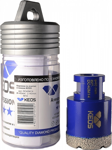 Цена и технические характеристики коронки алмазной по керамограниту Keos Professional Vacuum Brazed M14 40 мм: