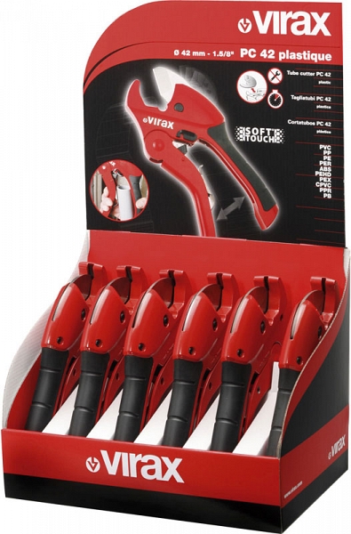 Ножницы для полипропиленовых труб Virax PC 42 (Виракс ПЦ 42) предназначены для резки ПВХ, ПП (РР, полипропилен), ПЭ (PE, полиэтилен), ПЭ-С, полиэфир-сульфон, полиэтилен PE HD, PER, PEX, АБС (ABS), ПНД, ХПВХ, ППР, ПБ, многослойных труб Ø до 42 мм (1 5/8"), а также электрического кабеля Ø до 12 мм, сечением до 4 × 2,5 мм².