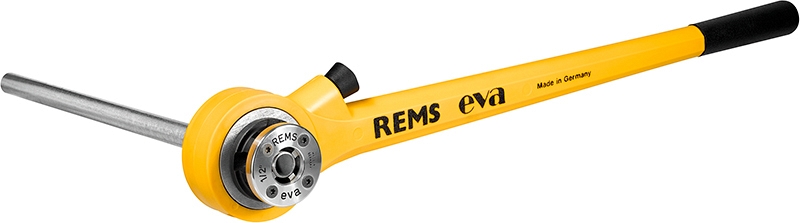 Ручной резьбонарезной клупп Rems Eva Set NPT 1/2"-3/4"-1" (Ремс Ева Сет НПТ 1/2"-3/4"-1") предназначен для нарезки правой трубной конической резьбы NPT (Taper Pipe Thread ASME B1.20.1) на стальных трубах Ø 1/2", 3/4", 1". Rems Ева – резьбонарезной клупп высокого качества для монтажников. Особенно легкий надрез и нарезание резьбы. Храповый рычаг из стали, покрытый пластиком. Всего один тип быстросменных резьбонарезных головок.
