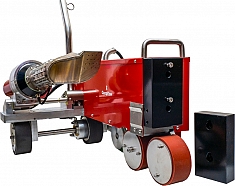 Сварочный автомат горячего воздуха СварПом СП41 40 мм 230 В (SvarPom SP41 40 mm 230 V) – автоматический сварочный аппарат горячего воздуха нового поколения для эффективной сварки внахлест горячим воздухом рулонных полимерных кровельных покрытий и гидроизолирующих мембран из ПВХ, ТПО, синтетического каучука и других гидроизолирующих полимерных кровельных материалов, может быть применен на объектах, где запрещено использование открытого пламени.