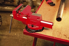 Тиски слесарные настольные с наковальней Virax 150 мм (Виракс 150 мм) – комбинированные трубные и параллельные (с параллельными зажимными губками), верстачные, поворотные (с дополнительным поворотным основанием) стальные слесарные тиски для фиксации труб Ø 3/4" – 2", а также изделий и заготовок другой формы.