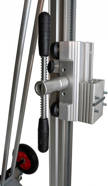 - Колонна высотой 2,1 м обеспечивает ход каретки 1,65 м, что позволяет использовать коронки длиной до 1,5 м!
