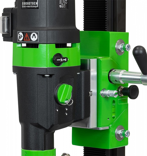 Установка с микроударом для алмазного бурения Eibenstock DSE 200 (Айбеншток ДСЕ 200) предназначена для сухого с микроударом и влажного сверления отверстий Ø 51 – 250 мм (оптимально Ø 51 – 202 мм), под углом до 45°, с подачей воды и без, в железобетоне, натуральном камне и асфальте при электромонтаже, сантехнических и отопительных работах в гражданском и промышленном строительстве.
